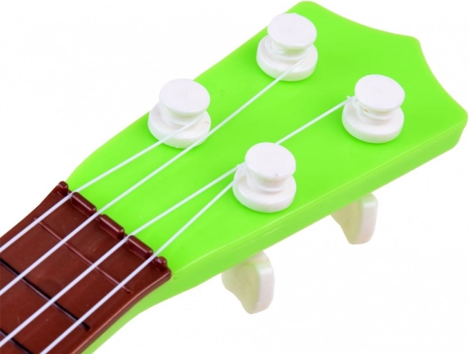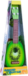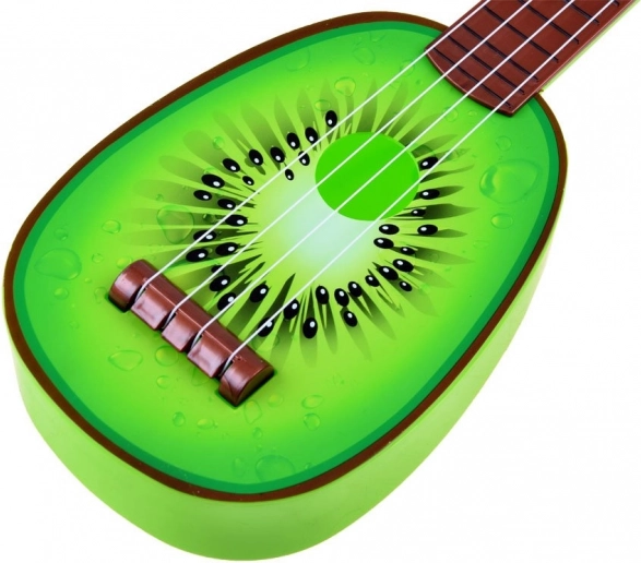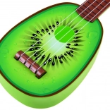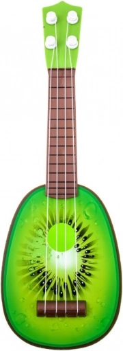 Roztomilé detské ukulele z ľahkého plastu poteší malých muzikantov. Má 4 struny s nastaviteľným krkom, kompaktné rozmery 37 cm a pôvabný ovocný motív, ktorý láka ku hre a rozvíja základy rytmu a hudobného citu.