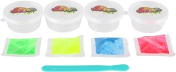 S touto kreatívnou sadou si deti ľahko vyrobia vlastný sliz so svietiacim efektom. Postup je jednoduchý: pridajte prášok, premiešajte, dozdobte a sledujte, ako sliz v tme žiari. Skvelá aktivita na rozvoj kreativity, jemnej motoriky a zvedavosti.