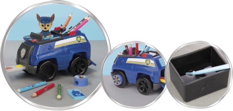 Táto zábavná kreatívna sada v podobe autíčka s hrdinom Chaseom z TLAPKOVEJ HLIADKY je skvelým darčekom pre všetky deti, ktoré milujú kreslenie a maľovanie. Praktické balenie slúži ako stojan, takže majú deti svoje výtvarné pomôcky vždy prehľadne po ruke.