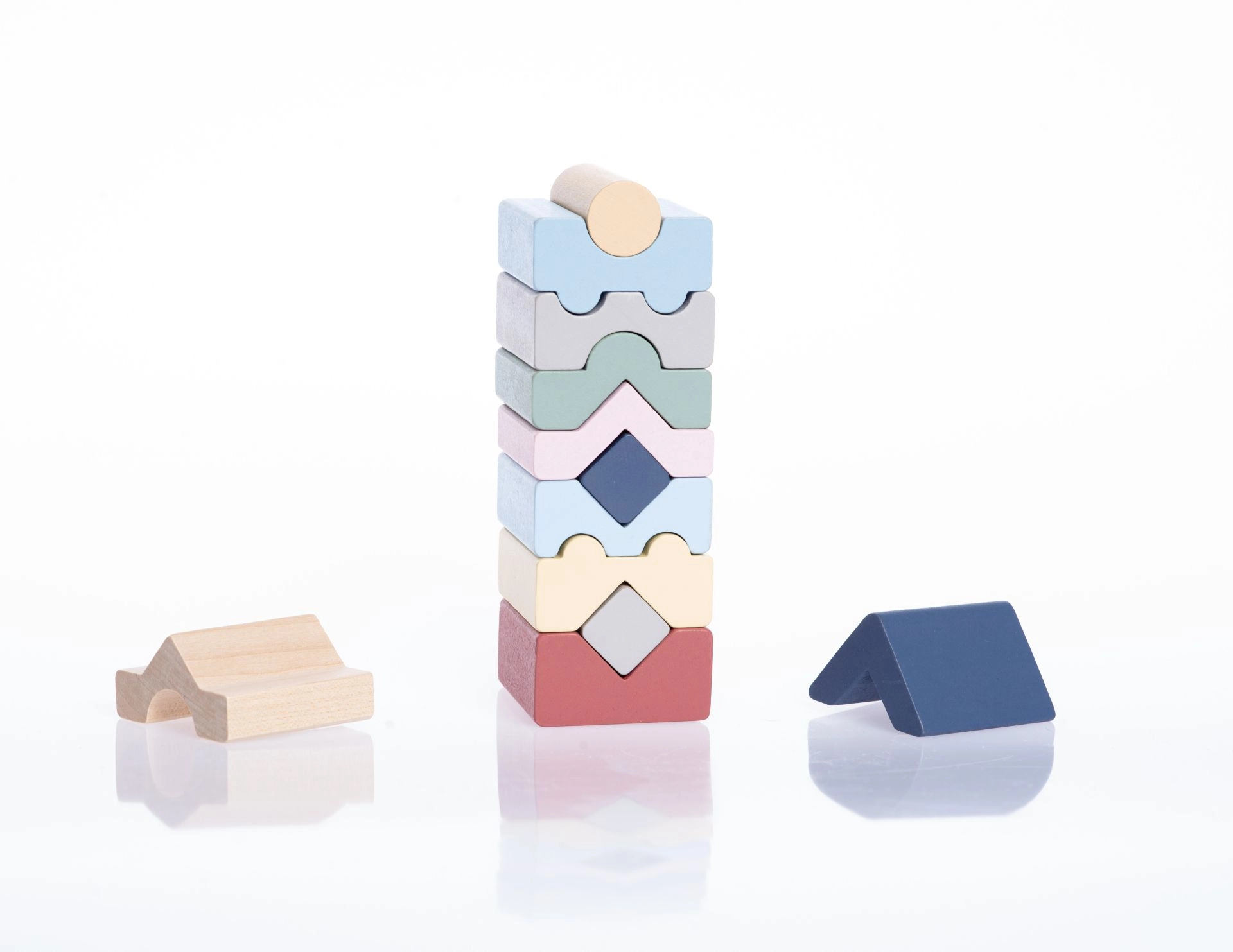 Pastelová veža XI od značky Cubika je premyslená drevená skladačka z 12 dielov v jemných pastelových odtieňoch. Deti diely navliekajú a skladajú tak, aby na seba správne nadväzovali a vznikla stabilná veža s výškou 16 cm. Vďaka precíznemu opracovaniu dreva sa s hračkou príjemne manipuluje a je bezpečná pre malé detské ruky.