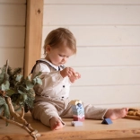 Materiály najvyššej kvality – masívny javor a buk – spolu s vodou riediteľnými, zdravotne nezávadnými farbami bez zápachu zaručujú dlhú životnosť a bezpečnosť. Hračka podporuje prirodzený rozvoj dieťaťa a spĺňa prísne európske normy.