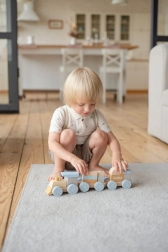 Výrobok je zhotovený z ekologicky pestovaného javora a buka a farbený netoxickými farbami na vodnej báze bez zápachu. Hračka spĺňa prísne bezpečnostné štandardy TÜV a EN 71 a je vhodná pre deti od 18 mesiacov, čo z nej robí ideálny darček na každodenné hranie.