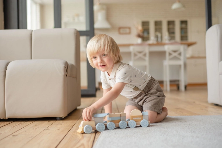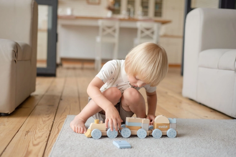 - Drevená skladačka – vláčik s dvoma vagónmi