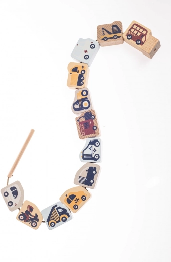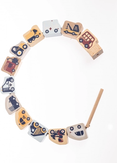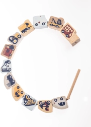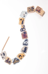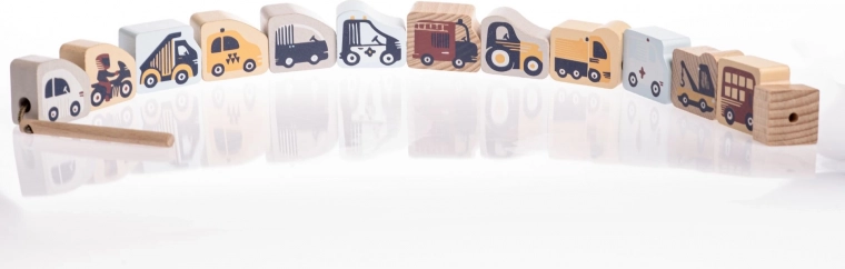 - Obsah sady: drevené prvky s dopravnými motívmi, šnúrka s kolíčkom a zarážkou, predlohové karty