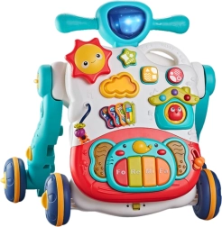 Interaktívne chodítko a odrážadlo 3v1 podporuje prvé krôčiky, rozvoj motoriky aj zmyslov. Kombinuje chodítko, edukačný panel a stolík na hranie. Vďaka svetelným a zvukovým efektom, piánu s 5 klávesmi a stabilným širokým kolesám s reguláciou odporu ponúka bezpečnú a zábavnú hru, ktorá rastie s dieťaťom.