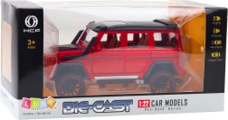 Kovový terénny model v mierke 1:22 kombinuje odolné materiály a realistické prevedenie. Červená karoséria, precízne detaily a športový dizajn umocňujú dojem skutočného off-roadu, ktorý skvele vyzerá doma aj na cestách.