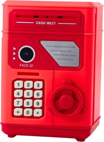Zábavný a bezpečný spôsob, ako deti naučiť hospodáriť s peniazmi: elektronická pokladnička so sejfovým zamykaním a PIN kódom, realistickou klávesnicou a automatickým vtiahnutím bankoviek. Červený sejf z odolného plastu zvládne drobné úspory aj bankovky, ponúka ľahkú zmenu hesla a kreatívnu nálepku imitujúcu Face ID pre ešte väčšiu zábavu.