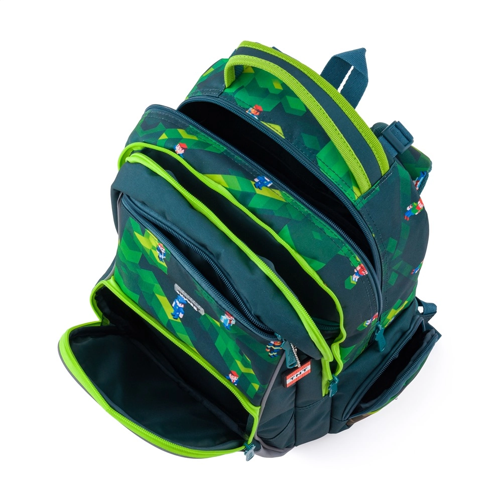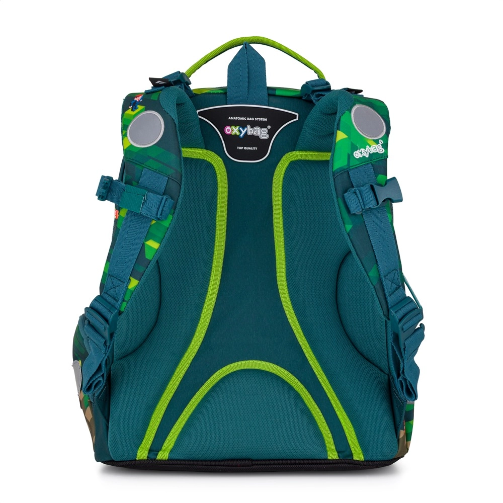 OXY GO Playworld je premyslený školský batoh, ktorý kombinuje pohodlie, bezpečnosť a atraktívny dizajn. Perfektne sedí na chrbte vďaka anatomicky tvarovanému a priedušnému chrbtovému panelu, ktorého dĺžka je 39 cm. Nastaviteľné ramenné popruhy dopĺňajú prídavné háčiky na uchytenie dlhších koncov, takže nič neprekáža pri chôdzi.