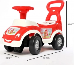 Odolné a hladké plastové spracovanie so zaoblenými hranami zaisťuje bezpečnú hru. Riadenie volantom s potlačou budíkov približuje deťom svet šoférovania a klaksón pridáva zábavný zvukový prvok. Odrážadlo nevyžaduje batérie, ľahko sa udržiava a je vhodné na použitie v interiéri aj exteriéri.