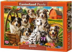 Užite si relax pri skladaní kvalitného puzzle s motívom veselých psíkov na vidieku. Obsahuje 1000 dielikov, ponúka ostré a sýte farby a po zostavení má rozmer cca 68 × 47 cm.