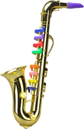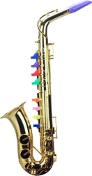 Detský saxofón v elegantnej zlatej farbe s farebnými klapkami zaujme na prvý pohľad a skvele sa drží v rukách. Mechanické prevedenie bez batérií je bezpečné, ekologické a vždy pripravené na hranie – stačí fúknuť a stlačiť klávesy.