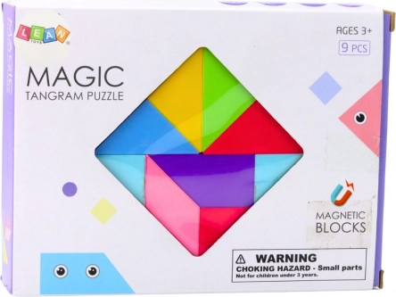 Objavte kreatívnu zábavu s magnetickými kockami tangram! Sada obsahuje 9 farebných dielov so silnými magnetmi, ktoré držia tvar a ľahko sa skladajú. Deti si vytvoria nespočet obrazcov a postavičiek, pričom si rozvíjajú kreativitu, logické myslenie a jemnú motoriku. Súčasťou sú návody s príkladmi aj samolepky s tváričkami pre ešte zábavnejšie hranie.