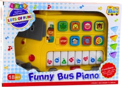 Žlté edukatívne piánko v tvare školského autobusu je skvelým spoločníkom pre prvé hudobné krôčiky. Vďaka farebnému prevedeniu, jednoduchému ovládaniu a svetelným efektom priťahuje pozornosť a podporuje prirodzenú zvedavosť detí.