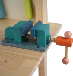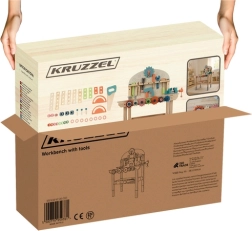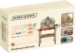 Detský drevený dielenský stôl KRUZZEL prináša kompletnú kutilskú stanicu pre malých majstrov skrutiek. Stôl s integrovaným zverákom, mierkou a predvŕtanými otvormi umožňuje reálne „pracovanie“ v bezpečnom prostredí. Prírodné, netoxické materiály a zaoblené hrany zabezpečujú bezpečnú hru, zatiaľ čo stabilná konštrukcia odolá každodenným dobrodružstvám.