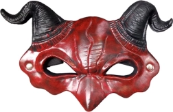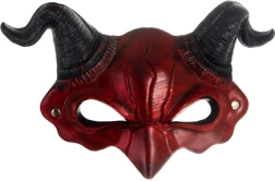 - Červená maska s čiernymi rohmi, 3D vypuklé detaily