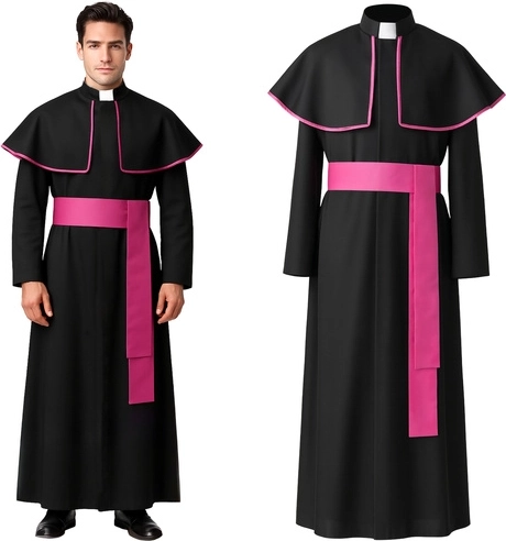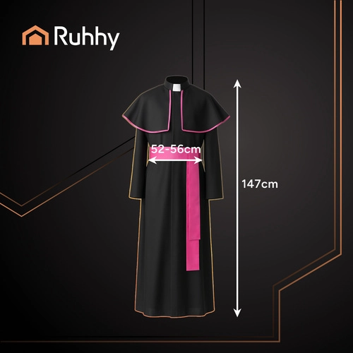 Súčasťou setu je dlhá čierna sutana s kolárikom, pelerínka s lemovaním a liturgický pás, ktoré spolu vytvoria výrazný a dôstojný vzhľad. Vďaka univerzálnemu rozmeru XL/XXL sa pohodlne prispôsobí rôznym postavám a skvele sa hodí na Halloween, maškarný bál, tematické večierky aj javisko.