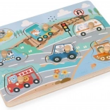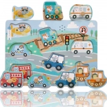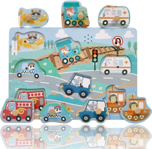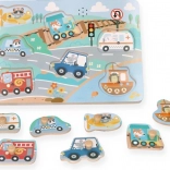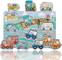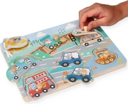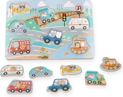 Tieto interaktívne drevené puzzle so zvukmi sú skvelou voľbou na prvé spoznávanie sveta dopravy. Každý dielik predstavuje iné vozidlo a po vložení na správne miesto sa ozve autentický zvuk, ktorý deti motivuje k opakovanému hraniu a učeniu.