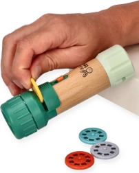 Táto detská premietacia baterka spája svetlo a zábavu – premietajte obrázky na stenu alebo strop a vytvorte deťom čarovnú atmosféru pred spaním. Vďaka kompaktným rozmerom sa ľahko drží a ovláda aj najmenším používateľom.