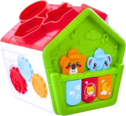 Interaktívny vzdelávací domček je viacúčelová hračka, ktorá podporuje jemnú motoriku, logické myslenie a koordináciu ruka–oko. Každá stena skrýva inú aktivitu: sortér tvarov, farebné pianíno, posuvné zvieratká, otočné ozubené kolieska a otvárateľné dvierka na kľúčik. Vďaka svetelným klávesom a veselým melódiám sa deti rady vracajú k hre a trénujú trpezlivosť aj sústredenie.