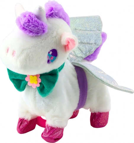 - interaktívny plyšový jednorožec, ovládacia vôdzka s tlačidlom, odnímateľné trblietavé krídla, odnímateľná mašľa, originálne balenie