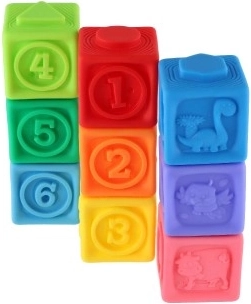 - farebné kocky s reliéfnymi číslami, tvarmi a zvieratkami