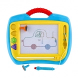 Magnetická tabuľka je skvelou alternatívou k papieru – deti môžu kresliť znova a znova, bez fixiek a bez škvŕn. Vďaka praktickej posuvnej gumičke/jazdcu sa obrázok jednoducho zmaže a priestor je pripravený na nové dielo. Odolné plastové prevedenie s držadlom uľahčuje prenášanie.