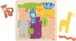 Súčasťou je drevený rámik, ktorý drží puzzle pohromade a uľahčuje skladanie aj ukladanie. Skvelá voľba ako prvé puzzle pre deti, ktoré milujú zvieratká a objavovanie sveta.