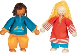 Flexibilné bábiky Fynja a Fabio v praktickej drevenej krabičke so zasúvacím vekom potešia každého malého milovníka hry na rodinu. Vďaka ohybným končatinám môžu bábiky sedieť, stáť aj ležať a skvele sa hodia do domčekov pre bábiky Goki alebo na samostatné hranie. Súčasťou je 8 sád oblečkov na neobmedzené kombinovanie a rozvoj fantázie.