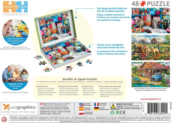 Puzzle EUROGRAPHICS Connecting Pieces Mačacie pletenie, 48 veľkých dielikov. Skladanie v krabičke, ideálne pre seniorov. Ekologická výroba, rozmer 43 × 24 cm.