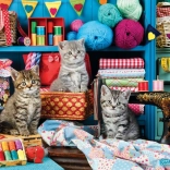 Puzzle EUROGRAPHICS Connecting Pieces sú navrhnuté ako zmysluplná zábava aj užitočná pomôcka pre mentálny tréning. Vďaka väčším dielikom sa príjemne skladajú, znižujú stres a zlepšujú koncentráciu. Motív „Mačacie pletenie“ poteší každého milovníka mačiek a pokojných chvíľ.