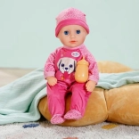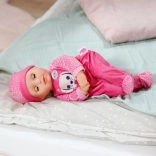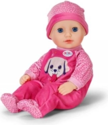 Roztomilá bábika BABY born Anna v tmavoružovom oblečení je ideálna parťáčka na hranie aj maznanie. Má mäkké telíčko pre pohodlné nosenie, žmurkajúce oči a v balení nájdete fľaštičku, dupačky a čiapočku. Skvelá voľba ako prvá bábika pre deti od 1 roka.