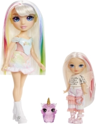 Objavte čarovný svet bábik Rainbow High s vílou sestričkou Opal. Táto rozkošná mini bábika má dlhé česateľné vlasy, trblietavé krídla a štýlový outfit, ktorý ladí s jej priehľadnými nohami s farebným nádychom. Súčasťou je aj maznáčik, ktorý môže nosiť jej krídla, a nechýbajú topánky. Ideálny darček pre deti od 4 rokov.