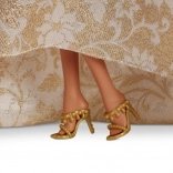 Táto sviatočná Barbie očarí dlhými hnedými vlasmi, veľkolepými náušnicami a nádhernými šatami inšpirovanými plesovou módou. Bohatá sukňa so zlatobielym vzorom, tylové detaily a výrazná mašľa pôsobia luxusne a vyniknú pri hre aj pri vystavení na poličke.