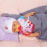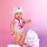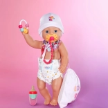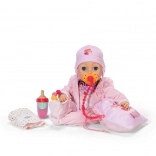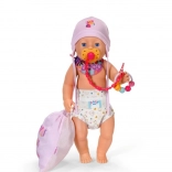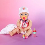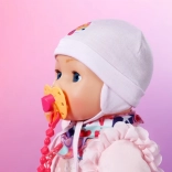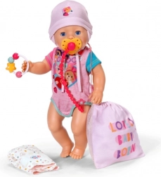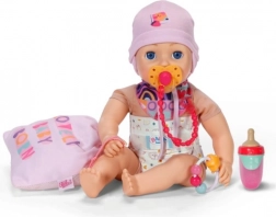 Kompletná sada doplnkov na starostlivosť o bábiku BABY BORN vo veľkosti 43 cm. Obsahuje fľaštičku, čiapočku, plienku, podbradník, hrkálku, dudlík a retiazku na dudlík – všetko v moderných farbách pre štýlové hranie. Kúzelný dudlík pri vybraných bábikách pomáha zavrieť oči a dá sa ozdobiť nacvakávacími ozdobami (nie sú súčasťou). Ideálne na role-play starostlivosť a rozvoj jemnej motoriky.
