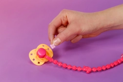 - Dudlík možno dozdobiť nacvakávacími ozdobami (nie sú súčasťou)
