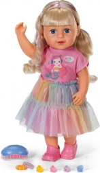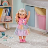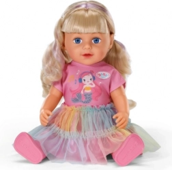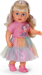 Objavte bábiku BABY born Carla 43 cm s dlhými kvalitnými nylonovými vlasmi, ktoré sa skvele češú. Súčasťou je 7 doplnkov na úpravu účesu, bábika má pohyblivé kĺby, vie stáť sama a vďaka pevnému telíčku sa môže kúpať vo vani. Štýl dotvára roztomilé tričko, duhová tylová sukňa a ružové topánky – perfektné pre kreatívne hranie a vlasový styling.
