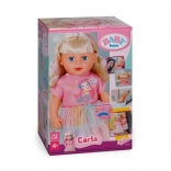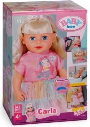 Bábika BABY born Carla prináša deťom množstvo možností pre kreatívne hranie. Dlhé a hebké nylonové vlásky sú ideálne na česanie, copíky aj zapletanie vrkôčikov. Sada 7 doplnkov – kefa, gumičky a sponky – podporí fantáziu pri každodennom stylingu.