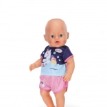 Toto pohodlné pyžamko s jemným tričkom a ružovými kraťasmi je navrhnuté pre bábiky BABY born 43 cm. Vďaka pružnému pásu a šikovnému strihu Easy Fit ho deti ľahko zvládnu obliecť samy, takže si užijú viac samostatnej hry aj role-play scenárov pred spaním.