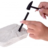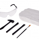 Premeňte stôl na malé archeologické nálezisko. V každom bloku sa ukrýva náhodne vybraná skamenelina lebky – môže to byť mamut, šabľozubý tiger, krokodíl, srstnatý nosorožec, africký byvol, orol, ovca s dlhými rohmi alebo dokonca človek-opica. Vďaka dláta m, kladivku a štetčeku deti krok za krokom odhaľujú jednotlivé časti, očistia ich a získajú jedinečný model.