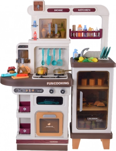 Veľká interaktívna detská kuchynka v béžovej farbe so svetlami, zvukmi a efektom pary. Funkčný kohútik s vodou, dispenzer a bohaté príslušenstvo.