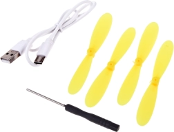 - RC motýlí dron, ovládač v tvare čarovnej paličky, akumulátor 3,7 V 500 mAh, 4 náhradné vrtule, USB‑C nabíjací kábel, skrutkovač, návod v angličtine