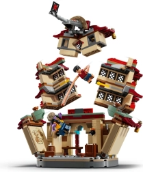 Udrete do hornej časti stavby a sledujte, ako sa pagoda dramaticky prevrhne – ideálne na dynamické prehrávanie bitiek SLAMÁKOV s pirátmi Arlonga.