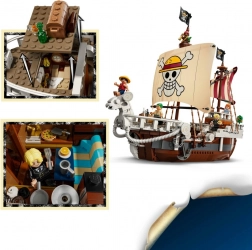 Súčasťou je päť minifigúrok: Monkey D. Luffy (na galióne s ukrytým dielom), Zoro, Nami (pri kormidle so svojimi mandarínkami), Usopp (na sťažni v bocmanovom koši) a Sanji (smerujúci do kuchyne). Nechýbajú ani plagáty s hľadanými a možnosť rozšíriť zábavu vďaka aplikácii LEGO Builder s 3D náhľadmi, otáčaním modelu a sledovaním postupu.