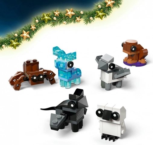 Tento čarovný kalendár skrýva za každými dvierkami nové prekvapenie: od minifigúrok Harryho Pottera, Draca Malfoya či Luny Lovegood vo sviatočných svetroch až po ikonické predmety z Rokfortu. Nechýbajú ani magické zvieratá ako Hypogrif, Aragog či Patronus v podobe jeleňa. Každý dielik podporuje fantáziu, rozprávanie príbehov a prináša sviatočnú atmosféru do vášho domova.