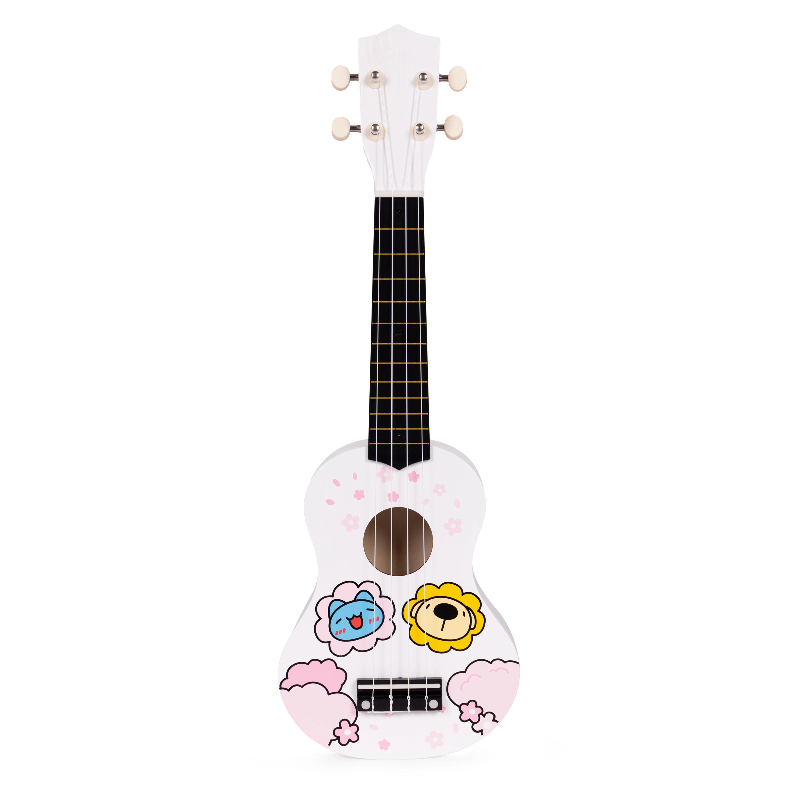 Objavte radosť z hudby s detským ukulele ECOTOYS – ľahký drevený nástroj so 4 nylonovými strunami, ladením a 12 pražcami. Farebný dizajn s obláčikmi a zvieratkami motivuje k hraniu, rozvíja jemnú motoriku, kreativitu a hudobné vnímanie. Súčasťou balenia je trsátko.