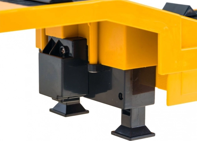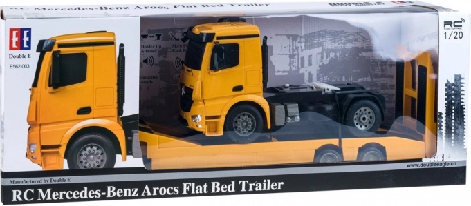 Licencovaný ťahač MERCEDES-BENZ s plato návesom na prevoz stavebných strojov ponúka realistické zvuky motora, svetelné efekty a plné ovládanie na frekvencii 2,4 GHz. Vďaka gumovým pneumatikám a nastaveniu zbiehavosti kolies je jazda plynulá a presná. Náves má zdvíhaciu rampu aj nastaviteľné podpery a možno ho elektronicky pripojiť/odpojiť pomocou diaľkového ovládača.