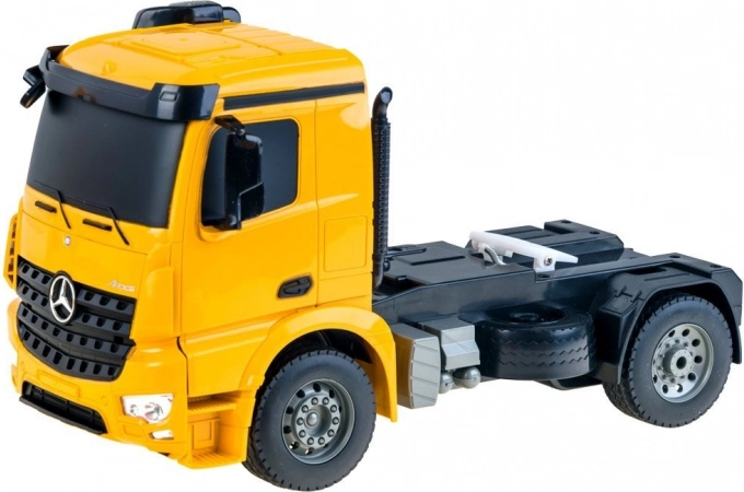 Tento detailne spracovaný RC kamión s licenciou MERCEDES-BENZ je ideálny pre malých nadšencov techniky. Ťahač aj náves sú vybavené gumovými kolesami, svietia predné aj zadné svetlá a pri cúvaní sa aktivujú spätné svetlá a zvukový signál. Realistický zvuk motora beží počas celej jazdy a umocňuje zážitok.