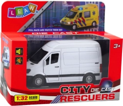 Realistická kovová dodávka v mierke 1:32 poteší malých aj veľkých fanúšikov. Ponúka naťahovací pohon pull back, otváracie dvere a svetelné aj zvukové efekty. Kvalitná kombinácia kovu a plastu zaručuje odolnosť, biely minimalistický dizajn sa hodí do každej zbierky modelov.