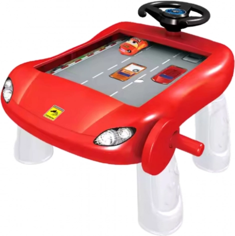 Zábavný manuálny simulátor jazdy v podobe stolíka poteší malých milovníkov autíčok. Vďaka volantu, trati s prekážkami a ručnému ovládaniu sa deti cítia ako skutoční vodiči. Autíčka sa pohybujú pomocou mechanického pohonu bez batérií, čo zaisťuje bezpečnú a tichú hru, ktorá rozvíja jemnú motoriku, koordináciu a sústredenie.