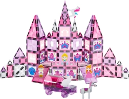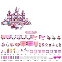 Objavte kreatívny svet s touto stavebnicou o 126 dieloch, ktorá kombinuje magnetické spájanie pre jednoduché a stabilné stavaníe s vitrážovými okienkami na vyfarbovanie. Vďaka priloženým fixkám si deti môžu vytvárať vlastné farebné vzory, rozvíjať fantáziu, jemnú motoriku aj logické myslenie. Polopriesvitné ružové kocky pôsobia atraktívne a robia z každej stavby skutočný klenot.